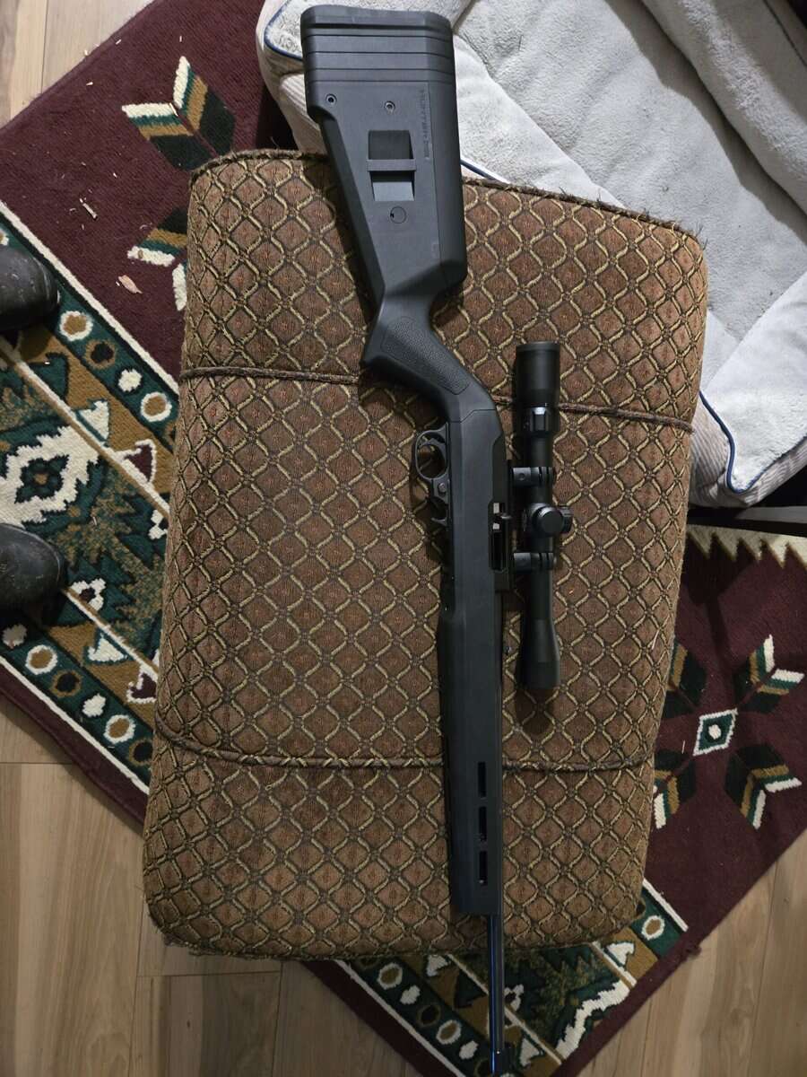 Ruger 10/22 in magpul hunter x stock with Simmons scope. Original stock and 1 mag included.