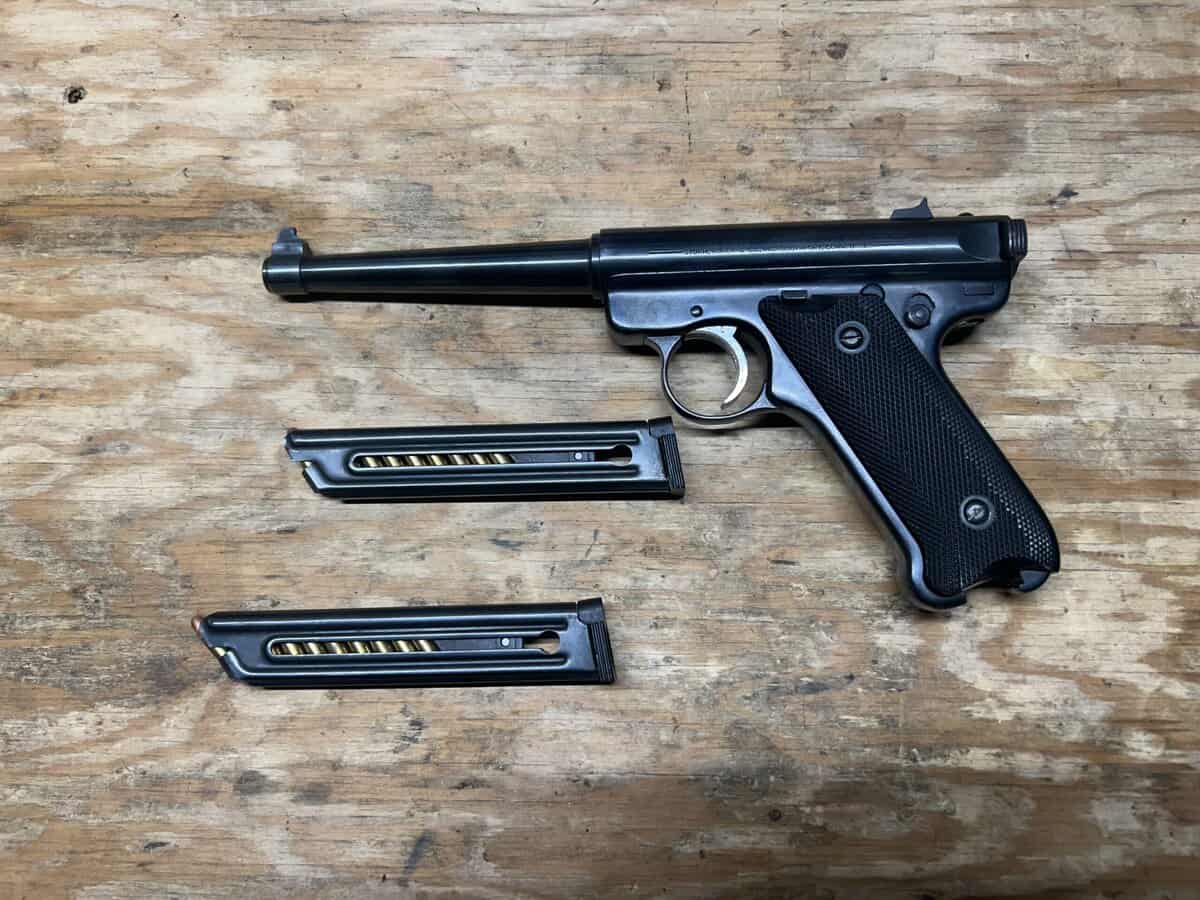 Up for sale, I have a Ruger Mark II in 22LR. In good working order. Includes the pictured 2 mags.