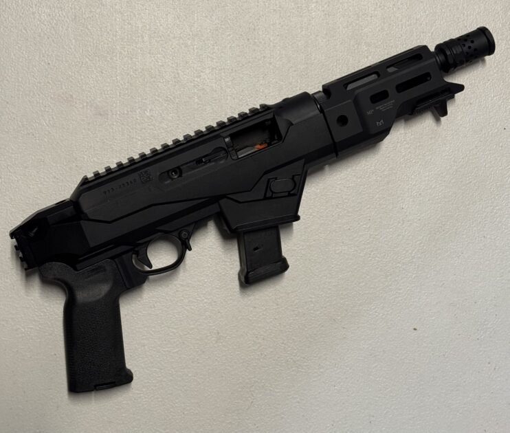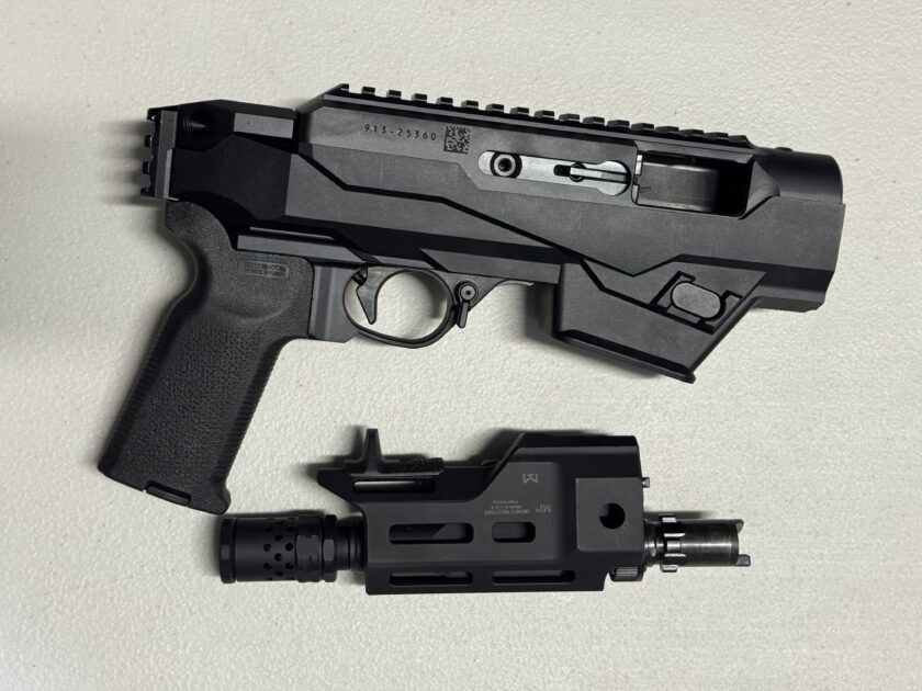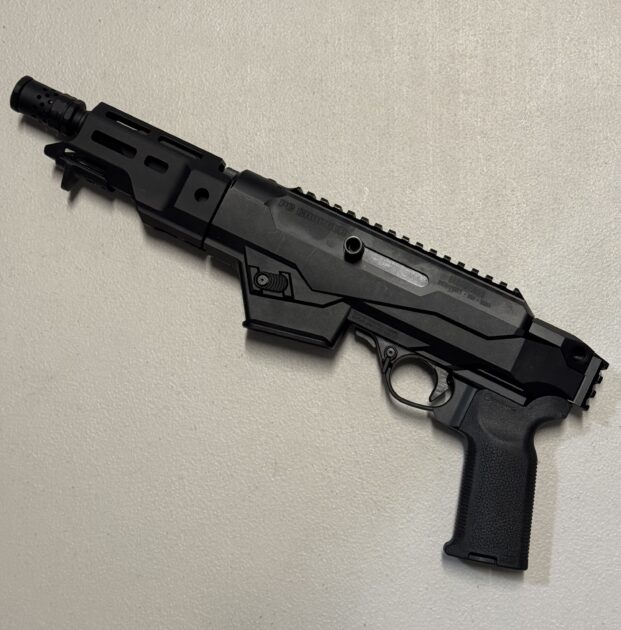 Add your favorite accessories….brace, optic, suppressor, 33 rd fun sticks and you’ve got a fun time in your hands that breaks down and fits in a bag.