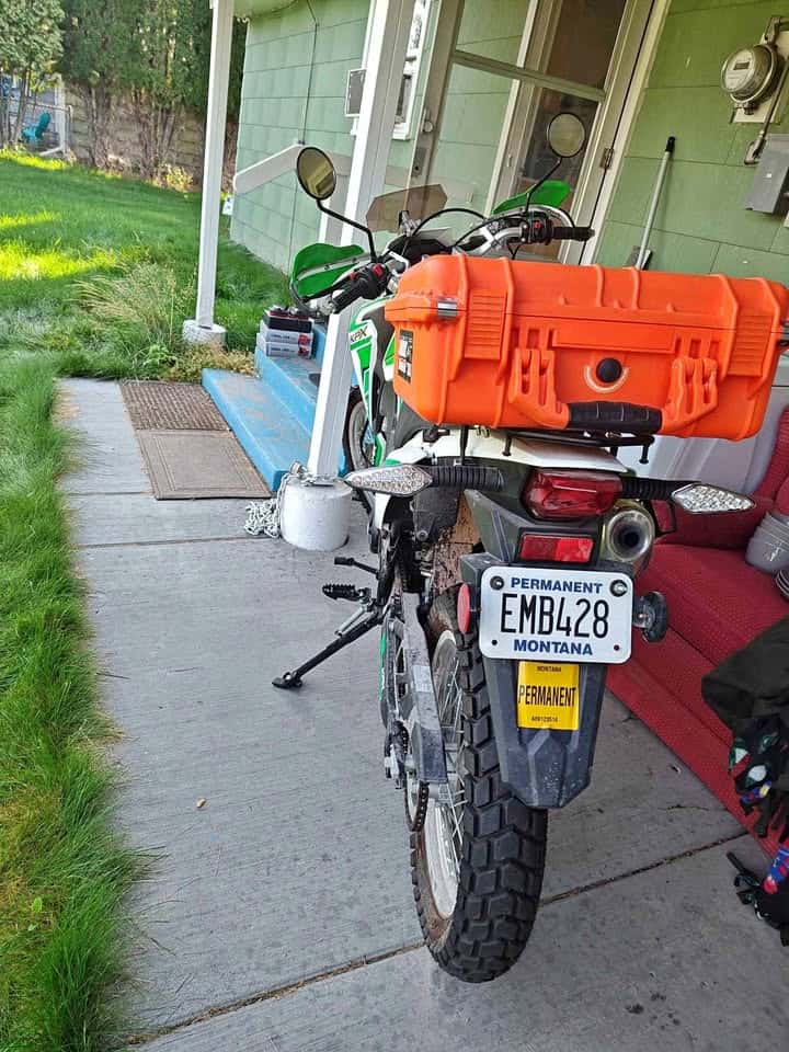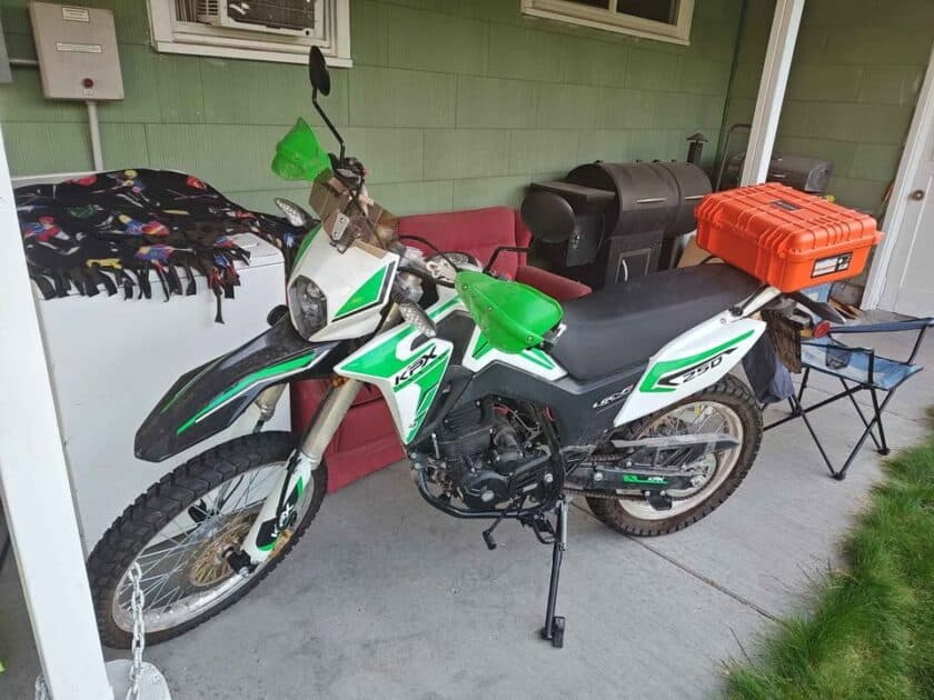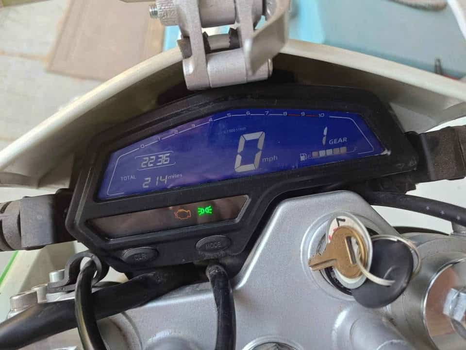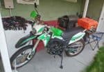 Almost brand new. Only 214 miles. Never dropped. I got this new, paying $2,899. I assembled it, changed the oil, and added matching brush busters on the handguard, a lockable orange rear box for visibility and storage, and a wind deflector. Great bike; I’m just going a different direction for my next off road bike (adventure bike). This one is super modern, well-made, and has everything you would ever want on a street-legal dual sport 250: Fuel injection, 6 speed, LED lights, good suspension, nice LCD display, etc. Look up Lifan – they’re the highest quality Chinese maker of these bike types – They make the engines for several Honda bikes, such as the XR150. Clean Title, 2 sets of keys, owner’s manual and forever tag for both roads and trails. Comes with free XL helmet. A steal at $2,200, or I would consider offers.