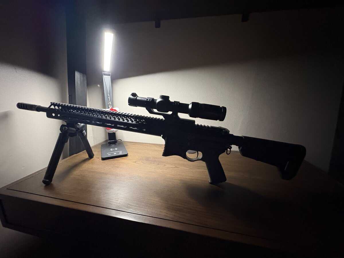 (Seekins muzzle break) it has a vortex strike Eagle 1-6 (optional for 300)