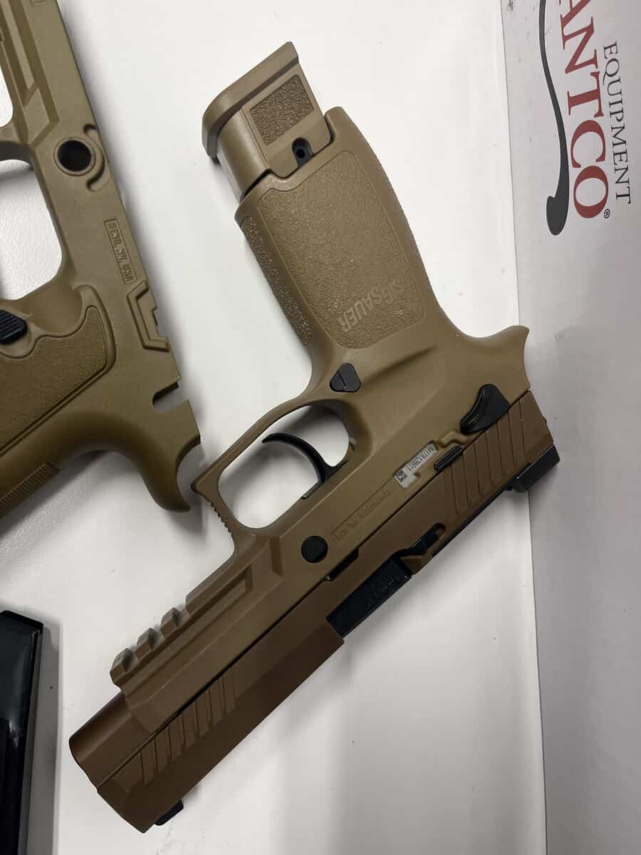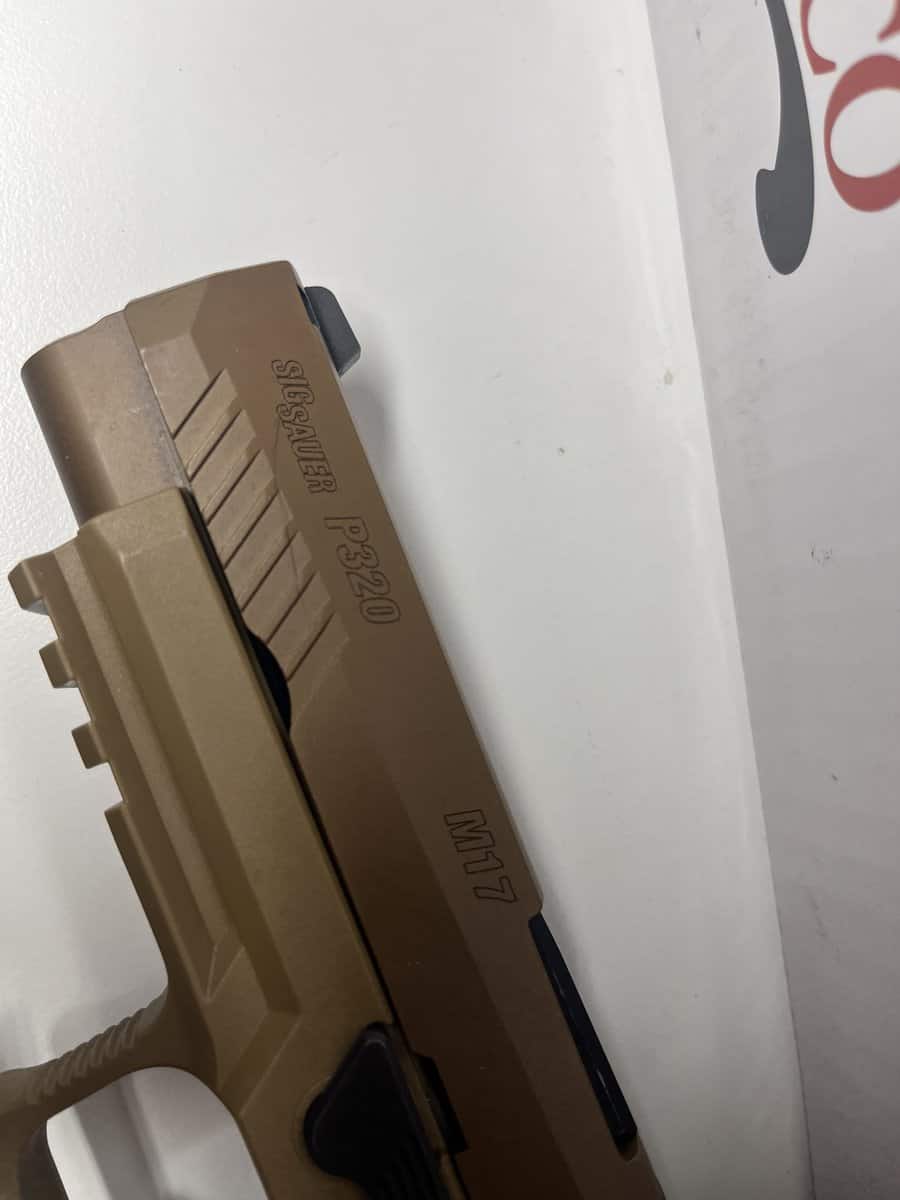 Nice clean p320 m17 with night sights and thumb safety. 2 factory mags and a spare aftermarket frame with a 1911 grip angle.