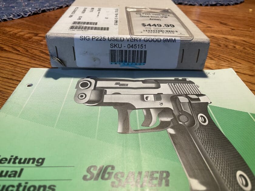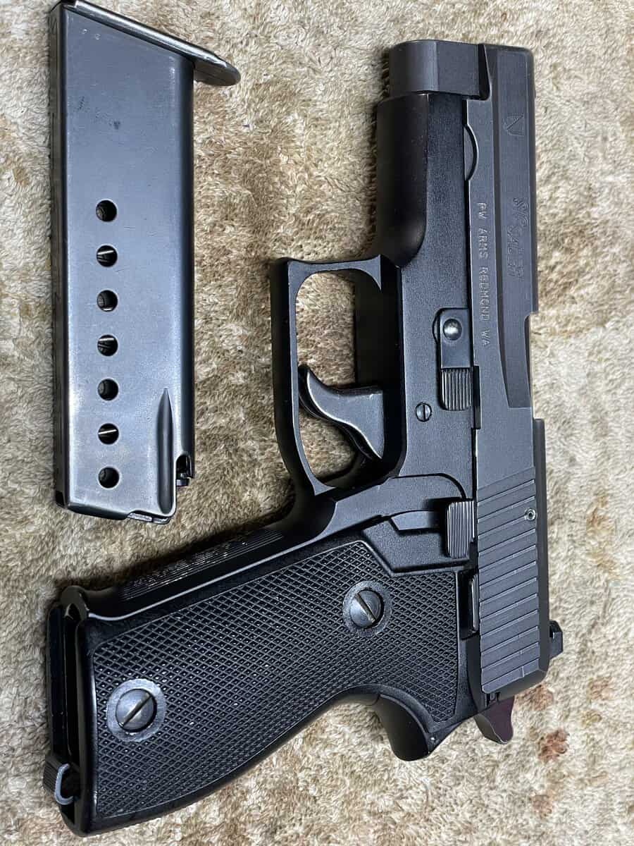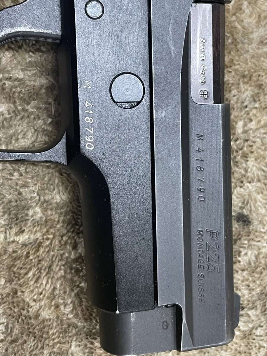 Very clean, excellent condition, Sig Sauer P225 9mm pistol. This P225 was manufactured in Switzerland and was used by the Swiss police. It was part of a buyback program many years ago where an importer, PW arms in Richmond WA, purchased and imported these pistols into the U.S. after they were retired from the Swiss police department. This pistol was made in 1979 or 1980 and is in excellent used condition. It has the “Montage Suisse” stamp on the slide along with Swiss proof marks and comes with and original Sig 8 round zipper back magazine. When I bought this gun, I installed an original Sig rebuild kit. I have put exactly 16 rounds through it since then. It functions perfectly. Everything is original on this gun (has the Sig short reset trigger installed). This gun has a heel magazine release as that was how the Swiss police ordered them from Sig. This is a very, very, well-made pistol. This pistol has night sights installed, and they are still bright. This is a true classic handgun. This gun has been in my safe, unfired, for 20 years. Additionally, I have 3 brand new, original, genuine, Sig Sauer magazines for this gun. I will sell then for $75.00 each if you want them. Comes with the box the gun came in when I bought it and the original Sig P225 user’s manual. You can see, I paid $449.99 for this gun 20 years ago and they have appreciated significantly since then. Instead of listening to me, please google this gun for more unbiased information to help in your decision making. Feel free to send me a fair and reasonable offer if you wish.