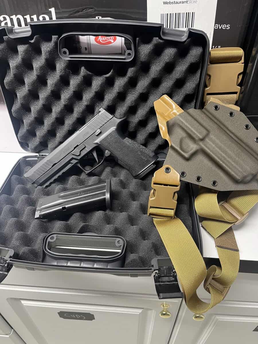 Nice clean 10 mm, optics, ready, two full capacity, magazines, and a gunfighters Inc. chest holster for right handed. Holster was $150.