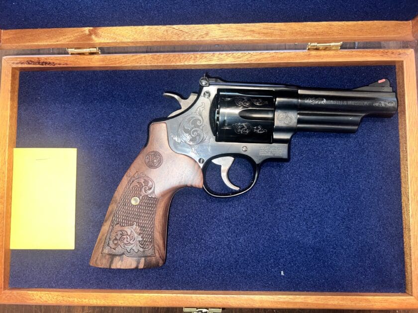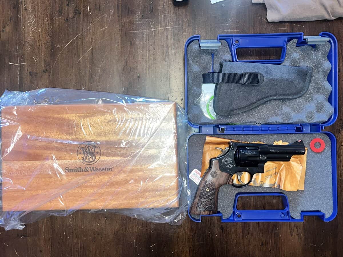 Included: plastic hard case, wooden display case, basic nylon hip holster