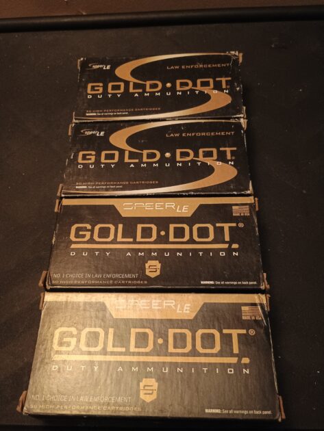 I have 4x 25 round boxes of old stock Remington Golden Saber 230 grain 45 ACP hollow point ammunition, along with 4x 50 round boxes of Speer Gold dot 230 grain 45 ACP hollow points.