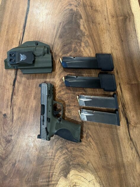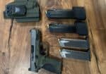 Optics ready pistol is in excellent shape, had it tuned by a gunsmith as soon as I bought it. Runs perfect. Includes 2 mags, 2 extended mags, kydex IWB left hand holster that can work as right hand OWB, hard case, and original box. Bought it new about 1 year ago, just does shoot very often.