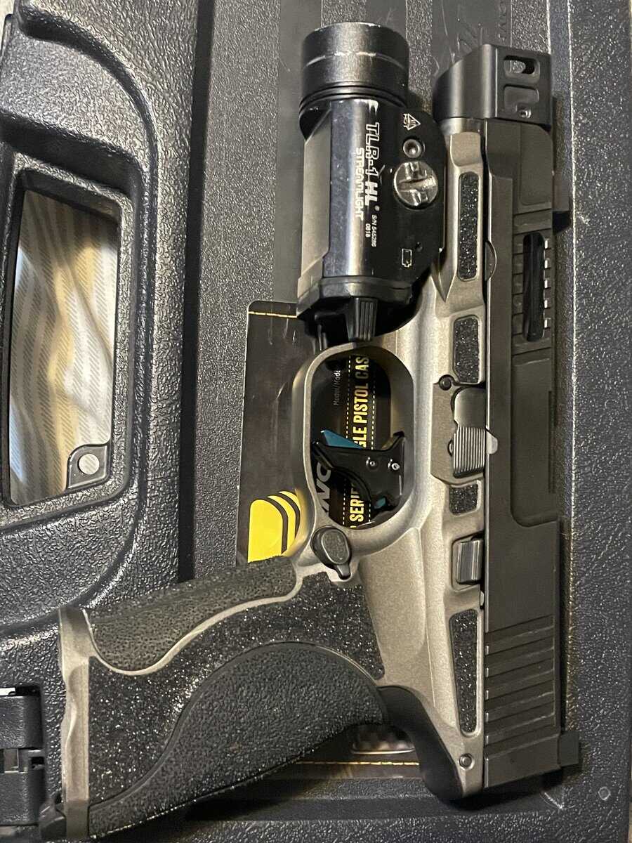 Has some wear from use on the frame cerakote, and the tlr1 is has some pretty good finish wear on it but still works great.