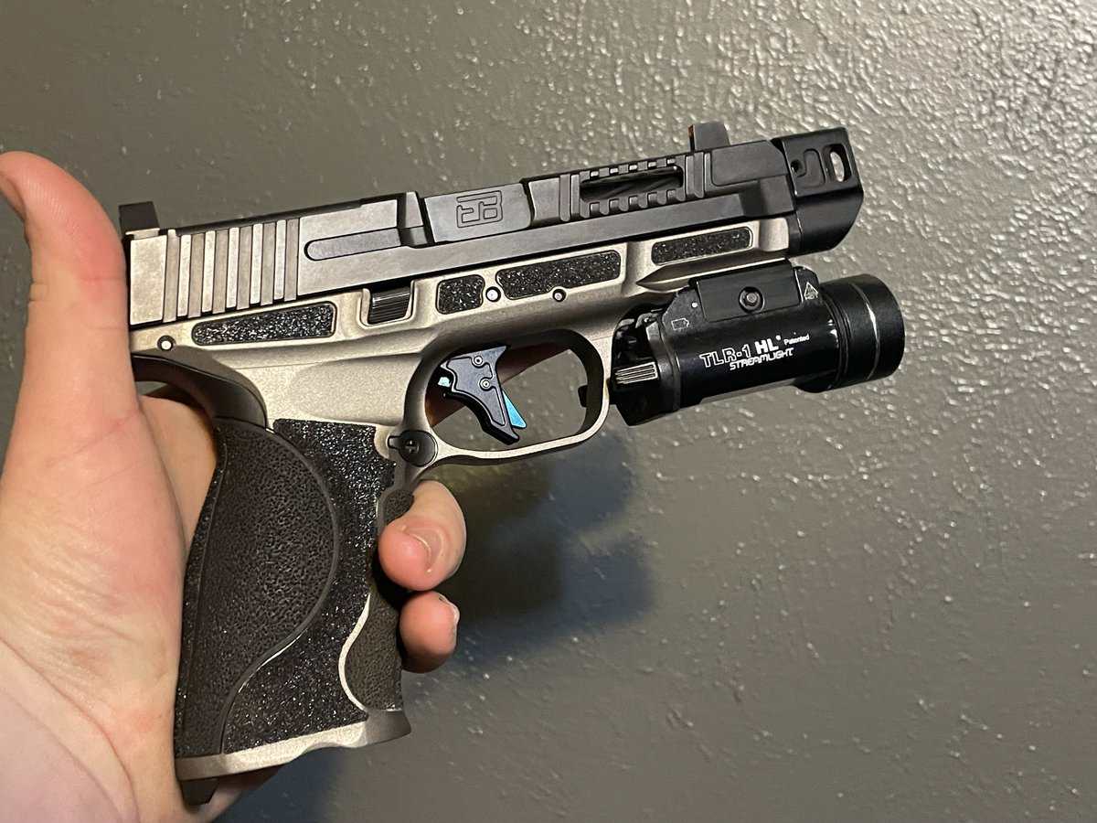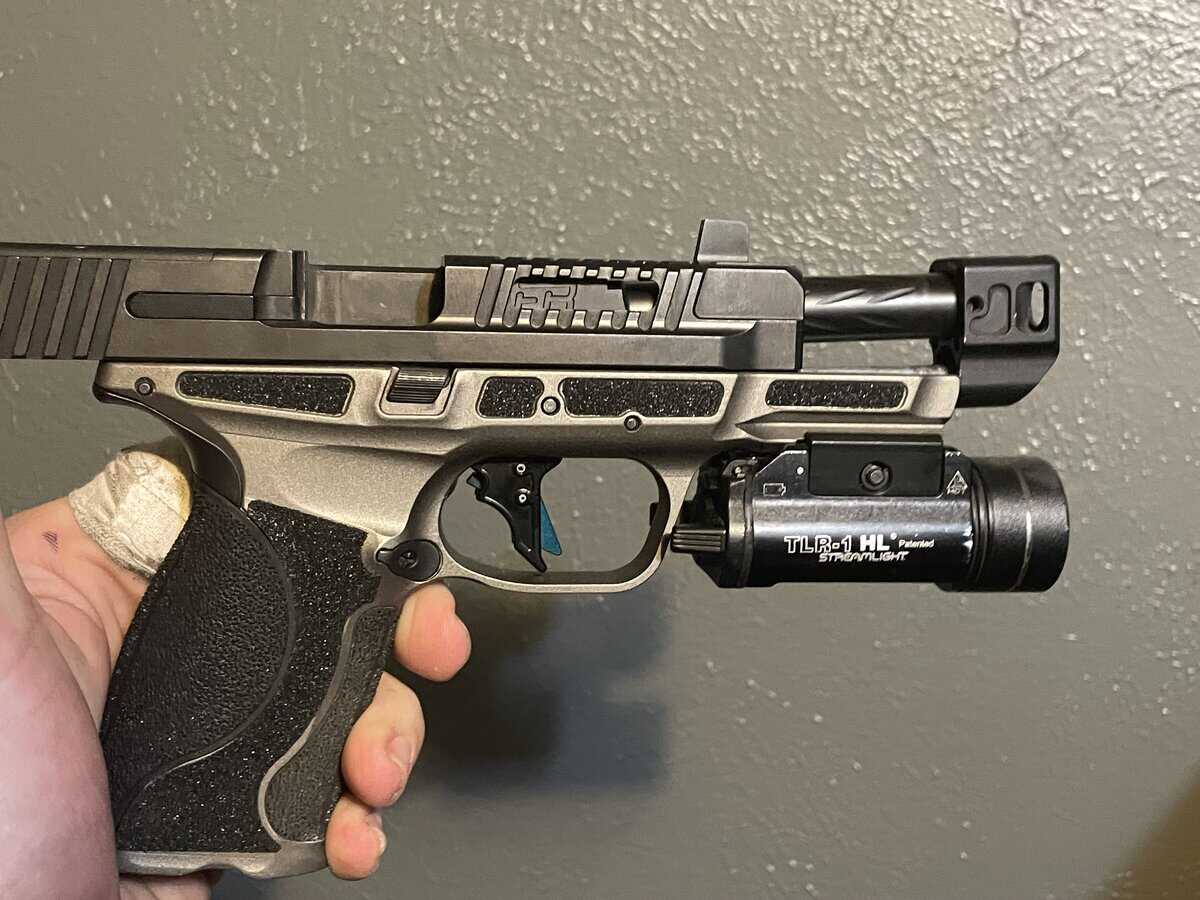 M&P 2.0 Metal in 9mm with a ton of aftermarket parts and addons.