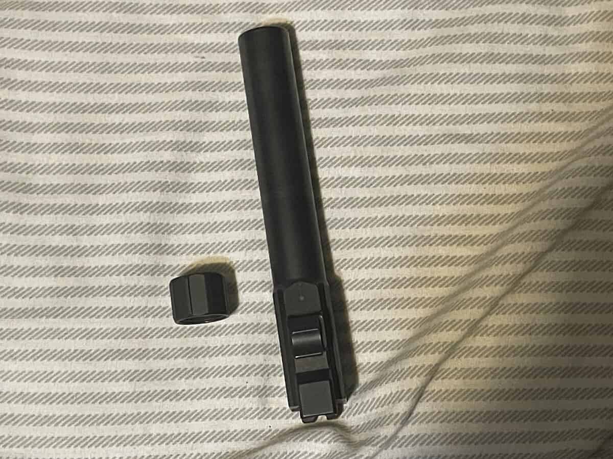 OEM non threaded barrel, trigger group, and the optic cut cover are all included.