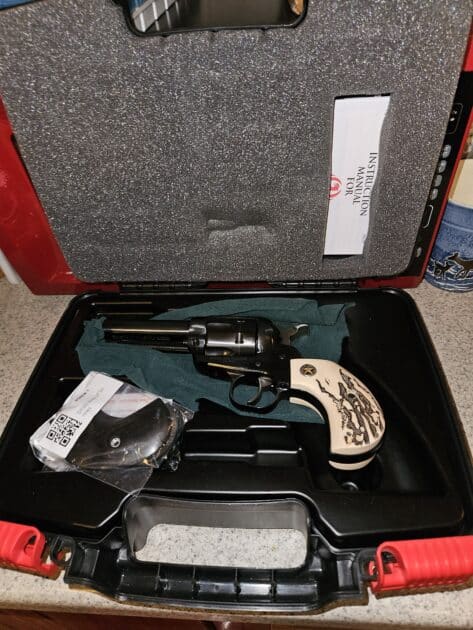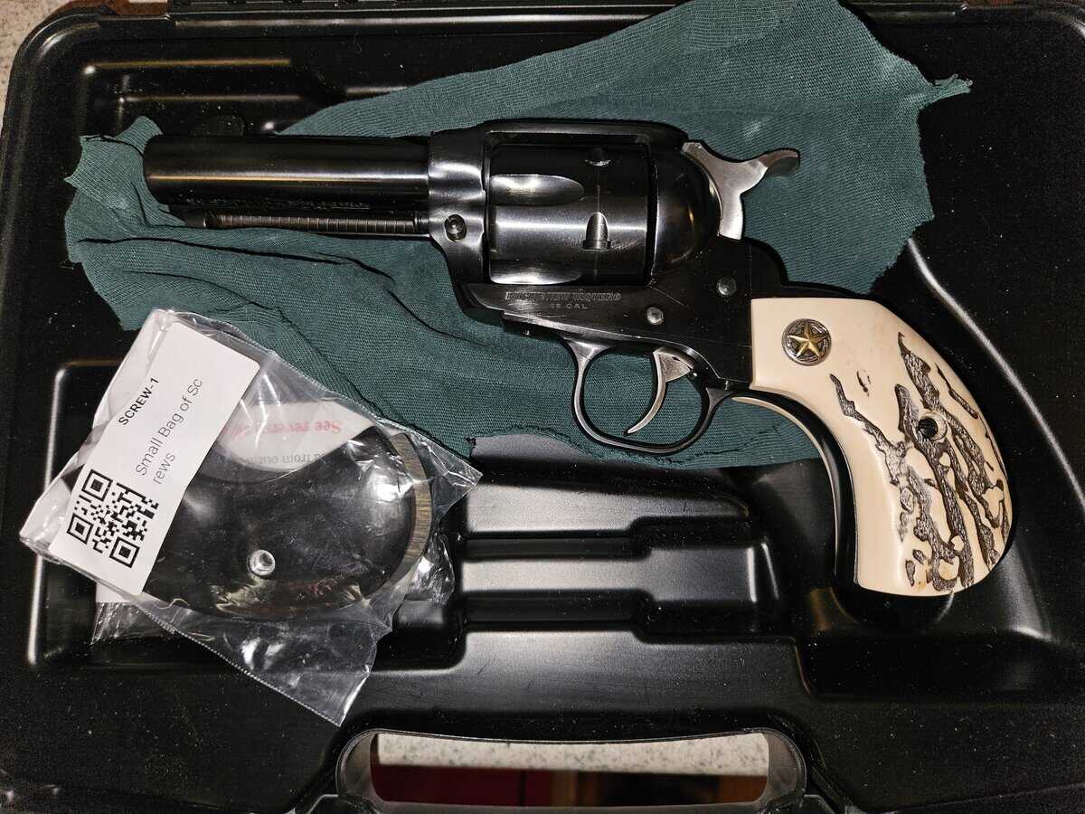New model vaquero. 3 3/4 barrel. Round butt. Extra stag like grips. $899 cash. Price is absolutely firm. Trades possible depending on what you offer. No shipping/ ftf only. You must be a Montana resident legal to own firearms or I won’t deal with you. If it doents sell or trade by the 27th of this month it will be on my table at Helena gun show.