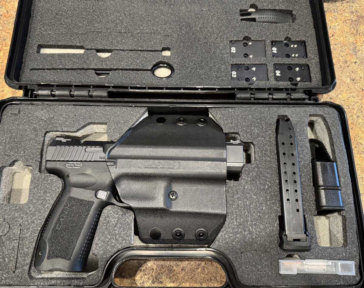 Canik TP9SFX 9mm, low round count. Comes with whole kit, holster, sight inserts, all optics plates, etc. Only has one 20 round mag for now, might have the other around here somewhere. $400