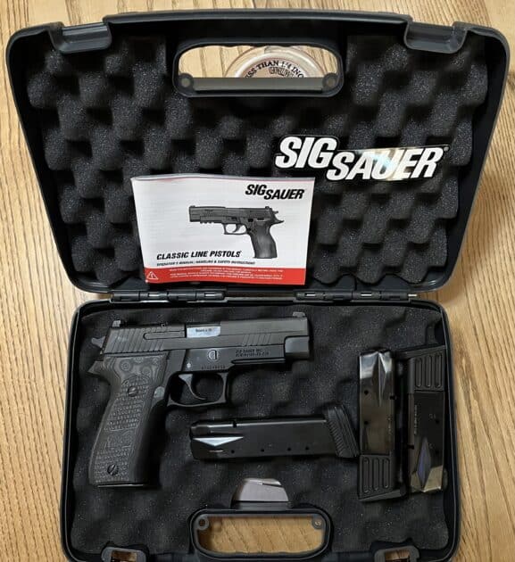 Colt 1911 Government 5”barrel. Model 1991A1 series 80. W/2 Colt mags and original box. $800. Sig Sauer P226. 2 10 rd mags, 1 15 rd mag and 1 18 mag. Original box and papers. $900. I prefer a 45 ACP over the nine, so would consider one (or two) for trade. What else do you have? Cash is fine also.