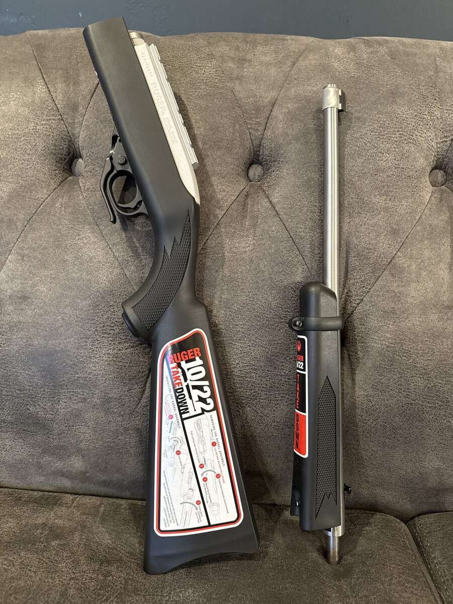 Model: Ruger 10/22 Takedown (Stainless Steel / Black Synthetic Stock).