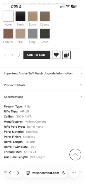 Complete Wilson Combat .300 HAM’R barrel ammo & mags.