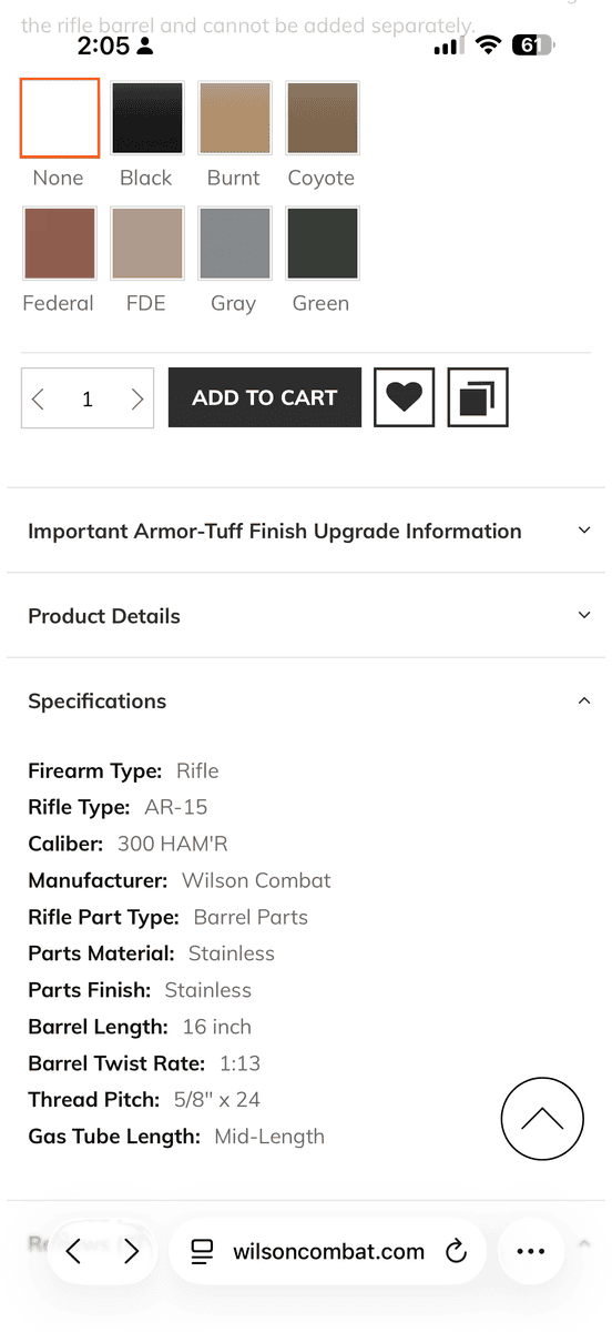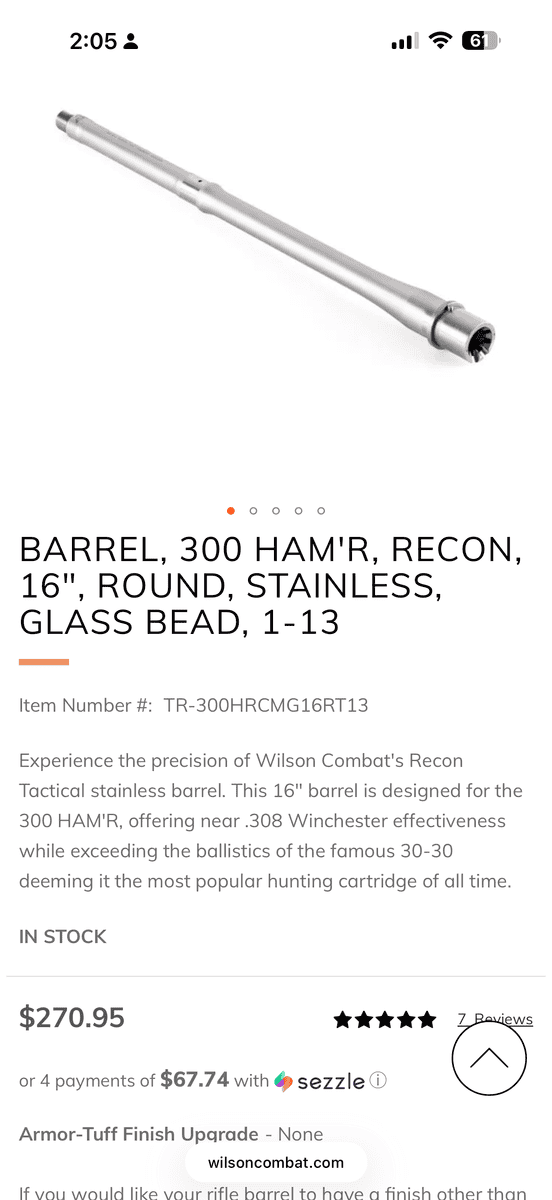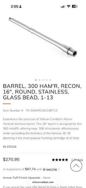 Low round count (less than 150) and very accurate. I also have 230 rounds of 135gr ammo bought from Wilson combat. This barrel can be used on a standard AR15 upper and it takes the standard 5.56 BCG. Swap it out, rock your stock AR15 parts and have a hard hitting round that out performs the good ol’ 30-30 and almost matches the .308 win. If you were to buy this new you’d be looking at over $750. I understand money is tight this time of year and this barrel isn’t new, so I dont expect to get new prices. I’d be open to cash offers or trade for a 9mm pistol. Send me a text at (406) 270-0080 for faster response or message me on here.