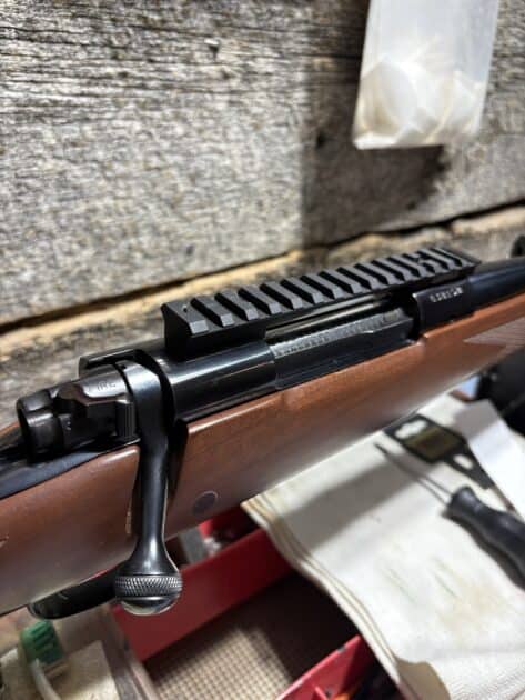 perfect cond rifle, DBM type, has 2 clips. 24in barrel, comes with 3×9 scope, see pic of target & the load that was used, maybe 250-300 rounds fired, thank you.