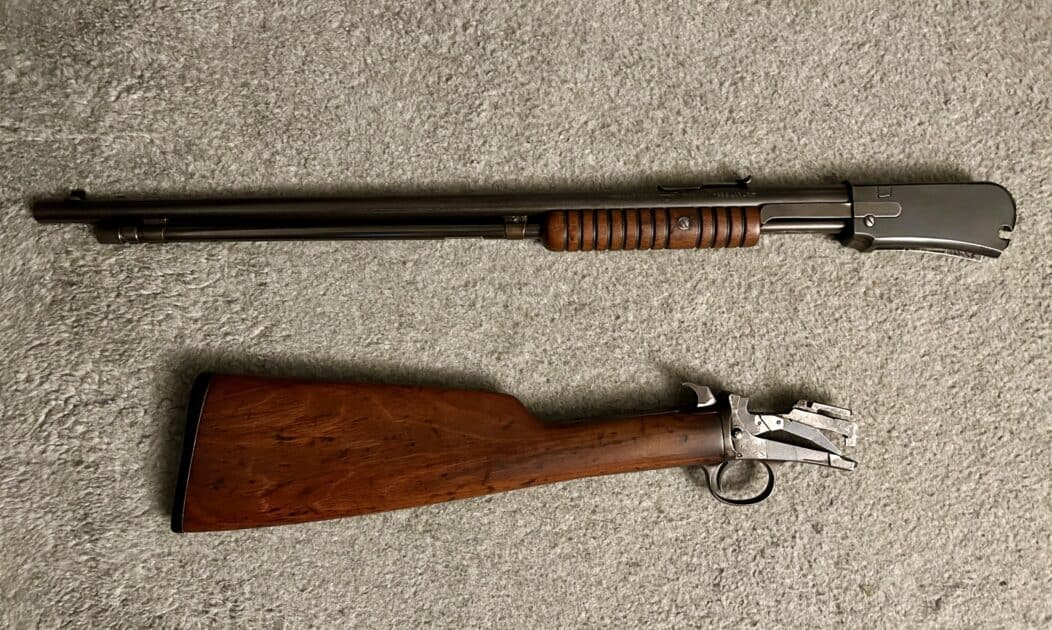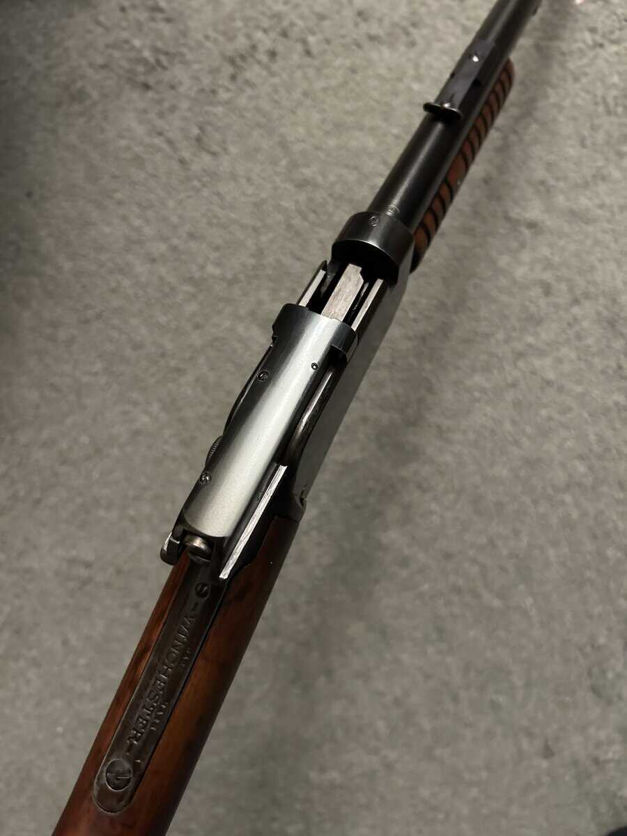 This is a classic Winchester model 1906 takedown pump action rifle in excellent condition. Known as a “Galley Gun” it is chambered in .22 short, .22 long, and .22 long rifle. Numbers matching on the upper barrel and lower receiver. It was made in 1926 and it functions correctly and as it should. It is 36 inches overall length so it would be good for younger shooters as well as adults. Great for around the homestead pest control. This is a highly sought after old Winchester vintage rifle. The barrel is absolutely perfect inside and out. The wood is also in excellent condition. Very nice rifle, considering it’s 100 years old. If you like classic Winchester rifles have a look at this one!!