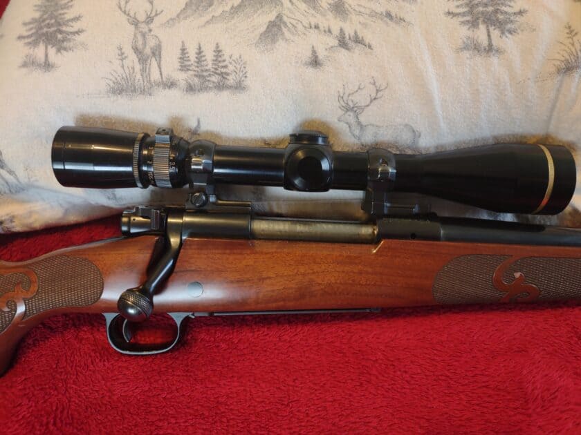 This is a Winchester Model 70 Featherweight .300 Magnum, with a 24″ Mag-Na-Port barrel, in excellent condition! The optics is a Leupold VX-III 3.5x-10x. This gun is well taken care of and is very accurate.